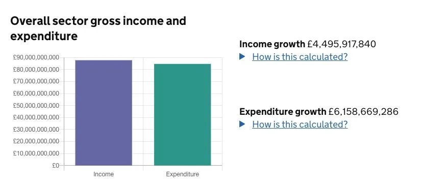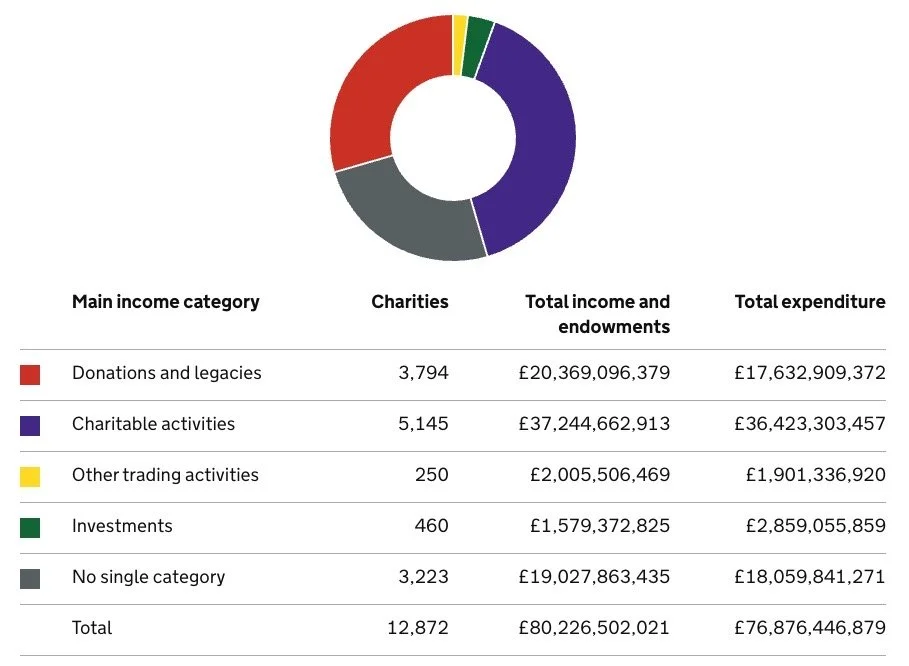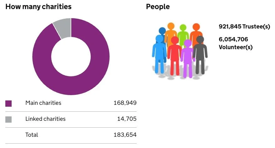 Accurate as at 30 April 2023. Source: https://register-of-charities.charitycommission.gov.uk/sector-data/sector-overview
